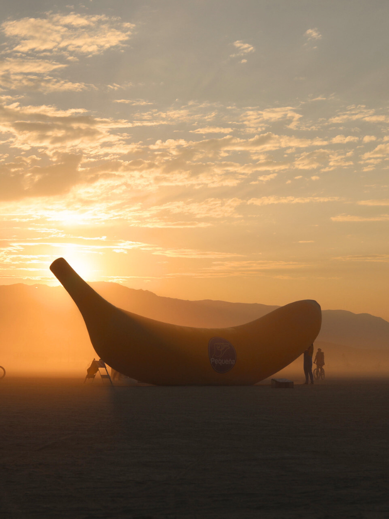Banana for Scale is a larger-than-life inflatable sculpture that first debuted at Burning Man 2024.